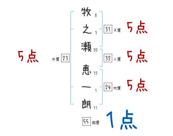 牧之瀬恵一朗さんの画数の鑑定結果