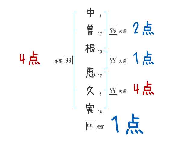 中曽根恵久実さんの画数の鑑定結果