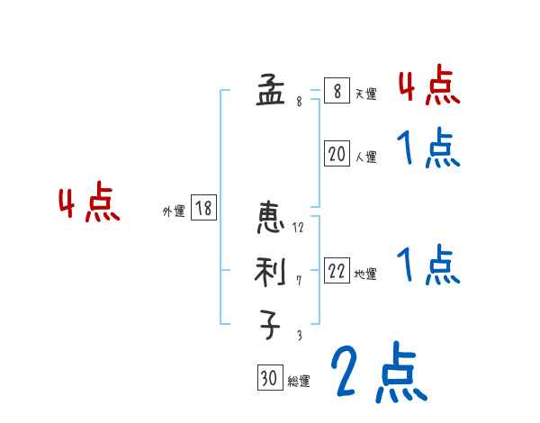 孟恵利子さんの画数の鑑定結果