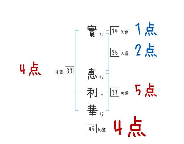 實恵利華さんの画数の鑑定結果