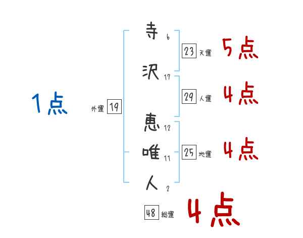 寺沢恵唯人さんの画数の鑑定結果