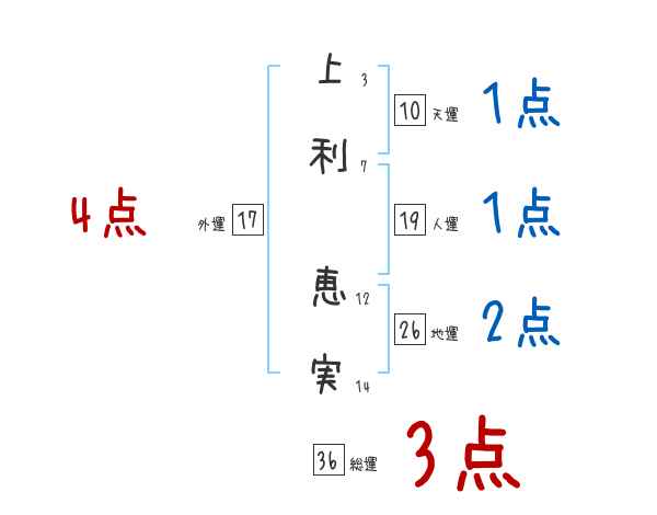 総運![]() | 上利恵実さんの総運は36画の3つ星!先見性が豊かです。多少神経質で苦労することも。 あなたの人生を表す1番重要な運勢です。生涯を通じて影響する総合運となり、主に50歳以降の晩年期に影響を及ぼします。 |