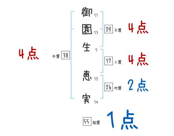 御園生恵実さんの画数の鑑定結果