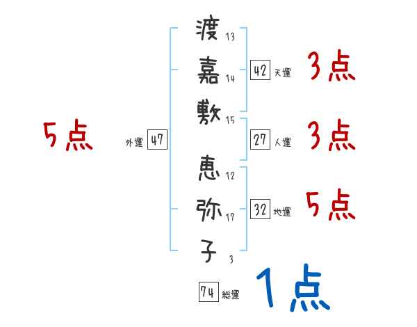 渡嘉敷恵弥子さんの画数の鑑定結果