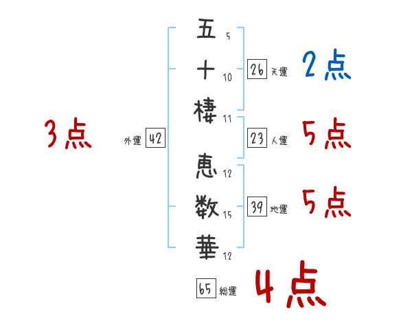 五十棲恵数華さんの画数の鑑定結果