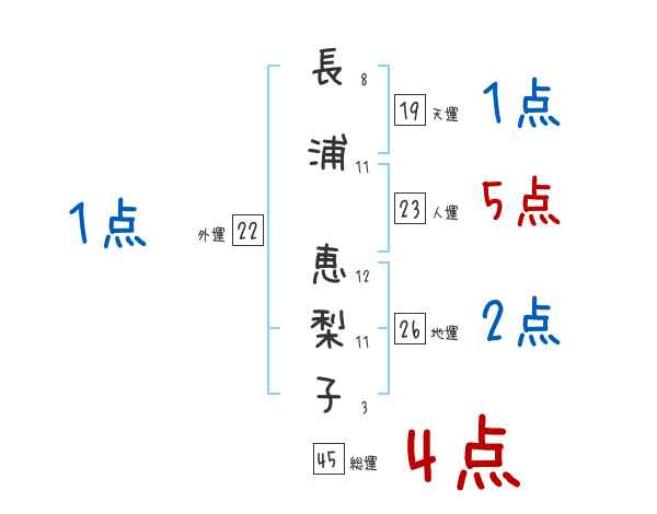 外運![]() | 長浦恵梨子さんの外運は22画の1つ星!努力することが苦手ないっぽう手先が器用。芸術性にも優れる。 生活面を象徴する運勢です。外部から受ける影響力を表し、結婚運、家庭運や職場、環境への順応性を表します。 |