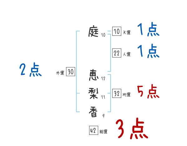 外運![]() | 庭恵梨香さんの外運は30画の2つ星!浮き沈みの激しさに注意しましょう。 生活面を象徴する運勢です。外部から受ける影響力を表し、結婚運、家庭運や職場、環境への順応性を表します。 |