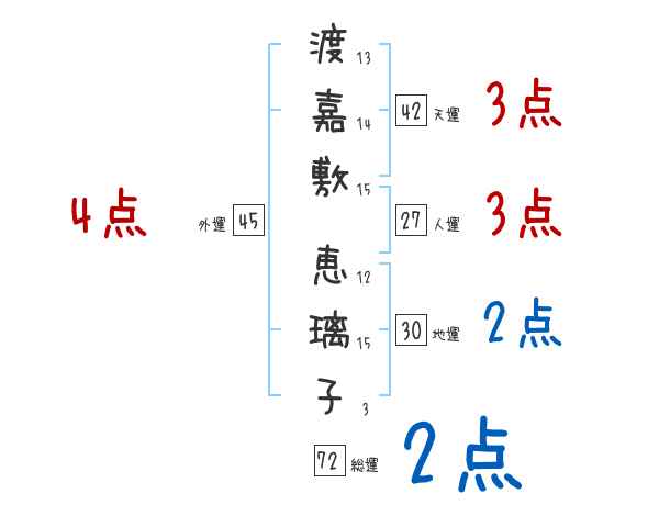 渡嘉敷恵璃子さんの画数の鑑定結果