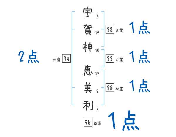 宇賀神恵美利さんの画数の鑑定結果