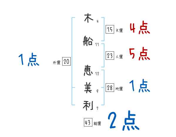 天運![]() | 木船恵美利さんの天運は15画の4つ星!人徳があり出世する。順調に物事を進め円満な人生。 家系が持つ宿命的な運勢を表します。祖先から受け継いだ苗字ですので自分の力が及びません。家柄を象徴します。 |