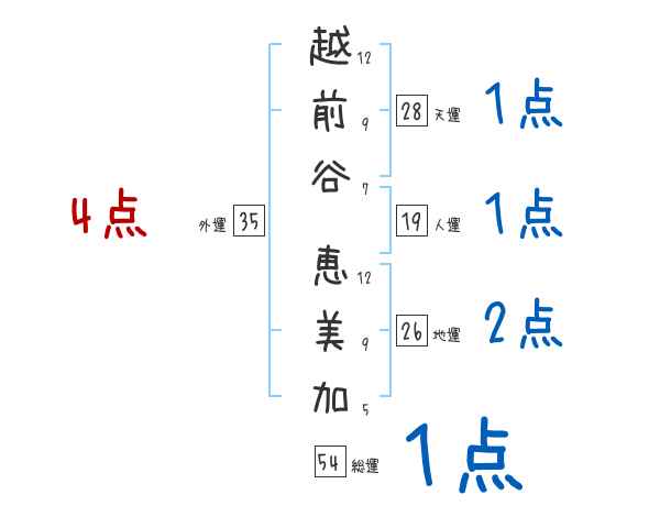 越前谷恵美加さんの画数の鑑定結果