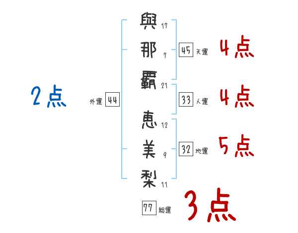與那覇恵美梨さんの画数の鑑定結果