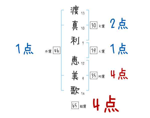 渡真利恵美歌さんの画数の鑑定結果