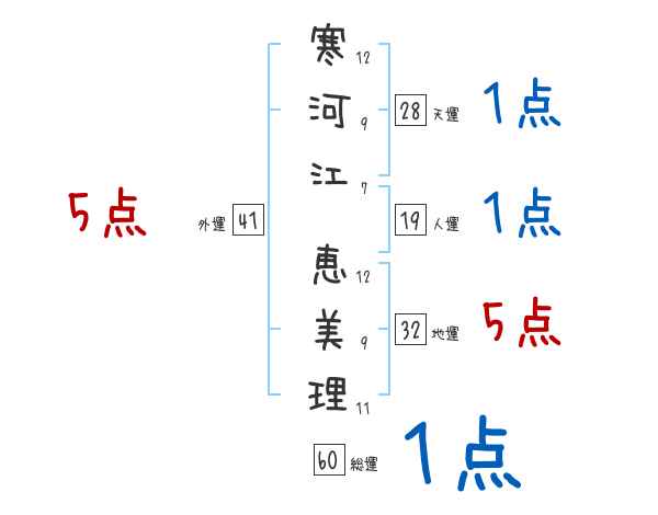 天運![]() | 寒河江恵美理さんの天運は28画の1つ星!家庭環境に注意。スポーツで活躍できる能力があるかも。 家系が持つ宿命的な運勢を表します。祖先から受け継いだ苗字ですので自分の力が及びません。家柄を象徴します。 |