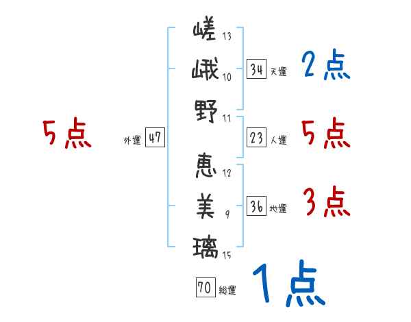 嵯峨野恵美璃さんの画数の鑑定結果