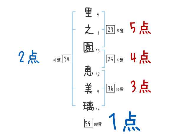 里之園恵美璃さんの画数の鑑定結果