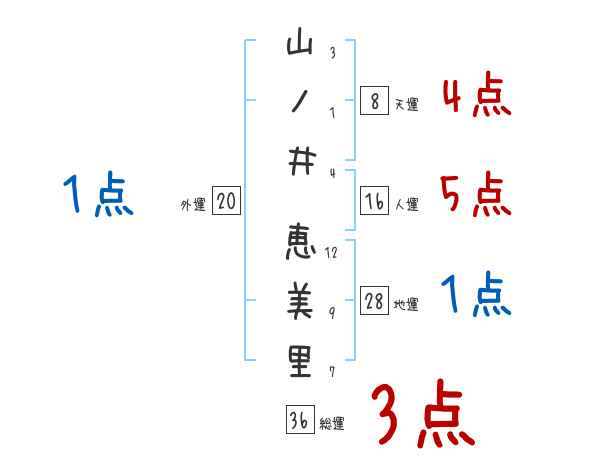 総運![]() | 山ノ井恵美里さんの総運は36画の3つ星!先見性が豊かです。多少神経質で苦労することも。 あなたの人生を表す1番重要な運勢です。生涯を通じて影響する総合運となり、主に50歳以降の晩年期に影響を及ぼします。 |