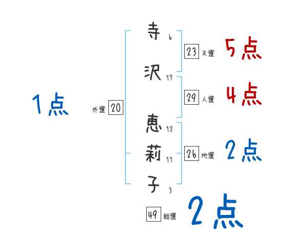 寺沢恵莉子さんの画数の鑑定結果