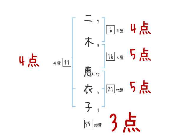 二木恵衣子さんの画数の鑑定結果