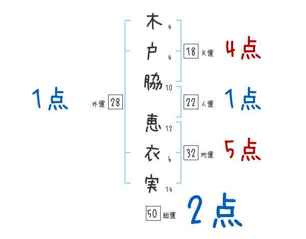 天運![]() | 木戸脇恵衣実さんの天運は18画の4つ星!情熱的で剛気。忍耐力があり信頼される。 家系が持つ宿命的な運勢を表します。祖先から受け継いだ苗字ですので自分の力が及びません。家柄を象徴します。 |