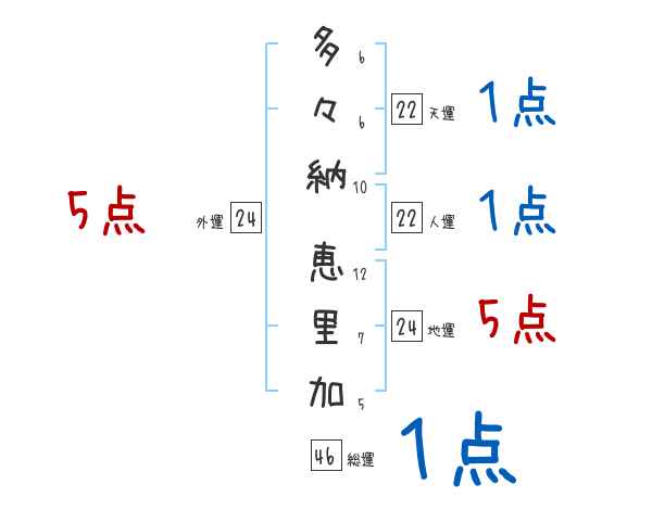 外運![]() | 多々納恵里加さんの外運は24画の5つ星!家庭運が良く順調な人生。金運にも恵まれる。 生活面を象徴する運勢です。外部から受ける影響力を表し、結婚運、家庭運や職場、環境への順応性を表します。 |