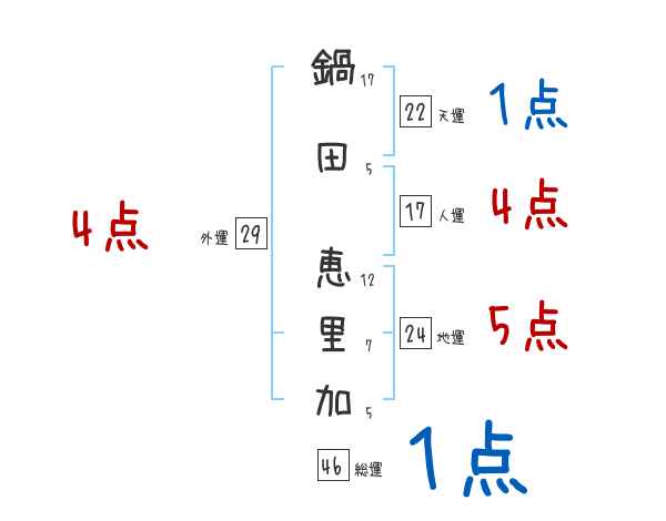 鍋田恵里加さんの画数の鑑定結果