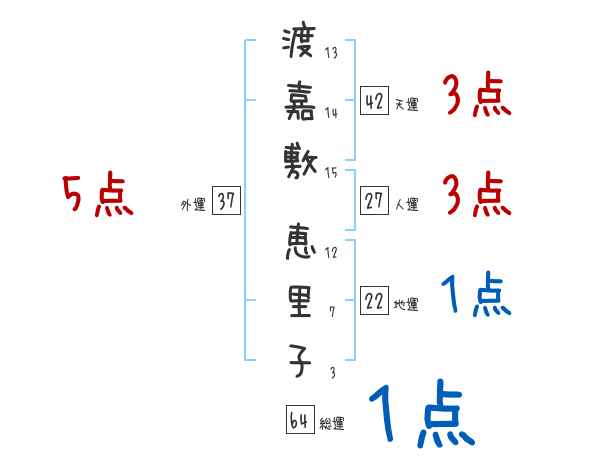 渡嘉敷恵里子さんの画数の鑑定結果