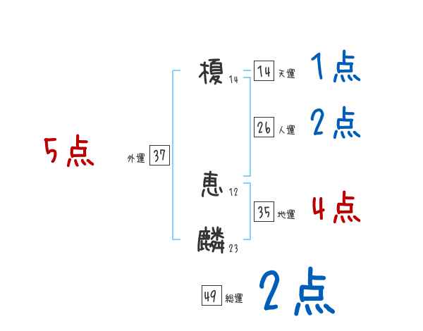 天運![]() | 榎恵麟さんの天運は14画の1つ星!人に対して優しいがストレスを溜め込みがち。人間関係のトラブルを避けるよう気をつけましょう。 家系が持つ宿命的な運勢を表します。祖先から受け継いだ苗字ですので自分の力が及びません。家柄を象徴します。 |