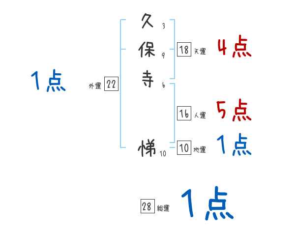 総運![]() | 久保寺悌さんの総運は28画の1つ星!家庭環境に注意。スポーツで活躍できる能力があるかも。 あなたの人生を表す1番重要な運勢です。生涯を通じて影響する総合運となり、主に50歳以降の晩年期に影響を及ぼします。 |