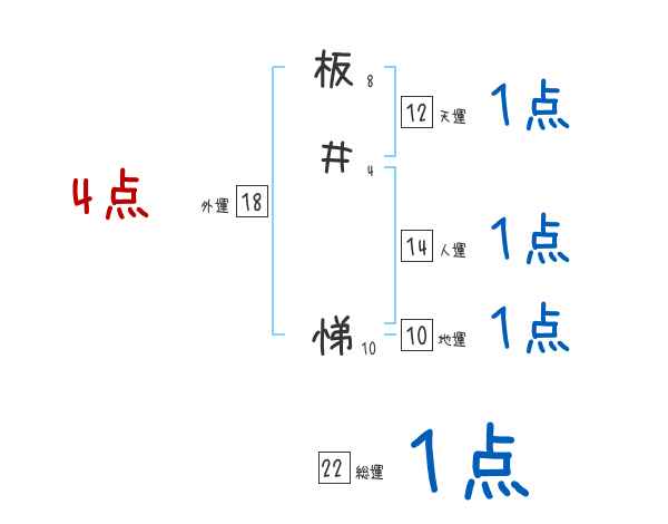 天運![]() | 板井悌さんの天運は12画の1つ星!簡単な失敗で諦めてしまいやすいかも。着実に行動すると良いでしょう。 家系が持つ宿命的な運勢を表します。祖先から受け継いだ苗字ですので自分の力が及びません。家柄を象徴します。 |
