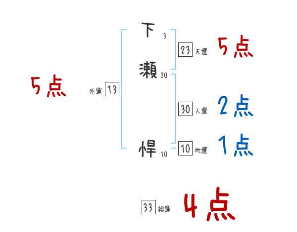 下瀬悍さんの画数の鑑定結果