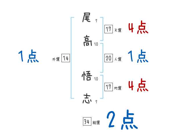 尾高悟志さんの画数の鑑定結果