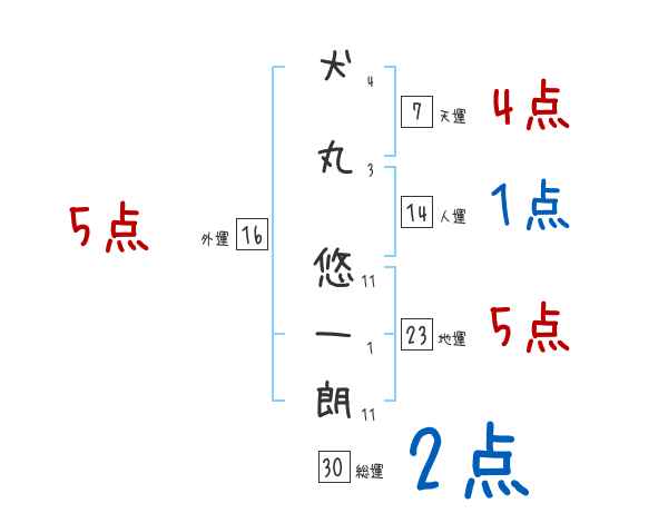 犬丸悠一朗さんの画数の鑑定結果