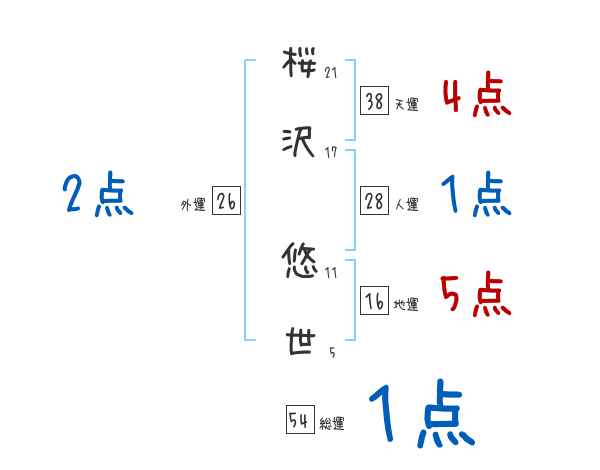 桜沢悠世さんの画数の鑑定結果