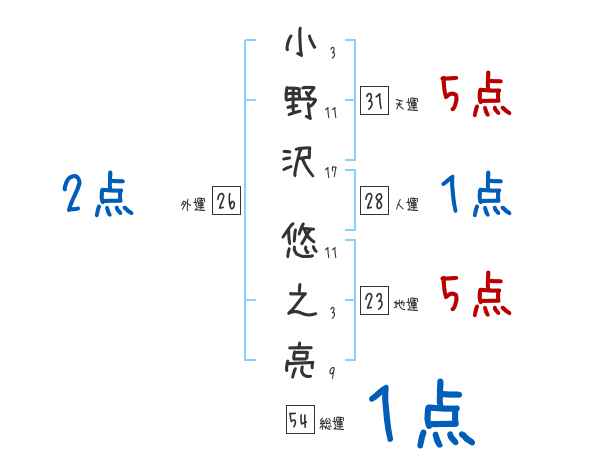 小野沢悠之亮さんの画数の鑑定結果