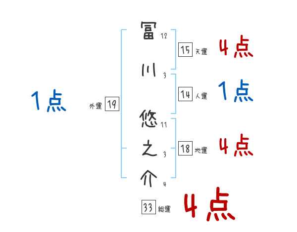 天運![]() | 冨川悠之介さんの天運は15画の4つ星!人徳があり出世する。順調に物事を進め円満な人生。 家系が持つ宿命的な運勢を表します。祖先から受け継いだ苗字ですので自分の力が及びません。家柄を象徴します。 |