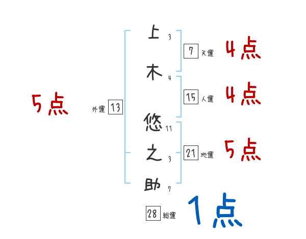 上木悠之助さんの画数の鑑定結果