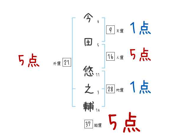 今田悠之輔さんの画数の鑑定結果
