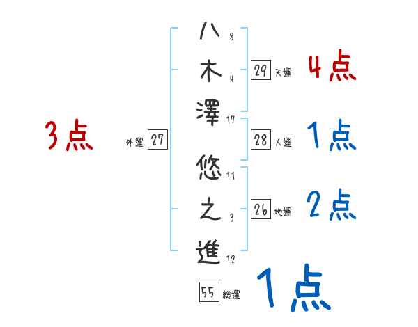 八木澤悠之進さんの画数の鑑定結果
