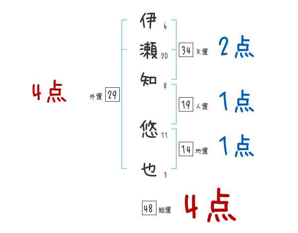 伊瀬知悠也さんの画数の鑑定結果