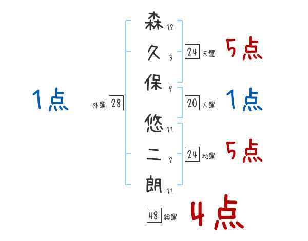 森久保悠二朗さんの画数の鑑定結果