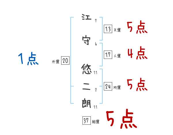 江守悠二朗さんの画数の鑑定結果
