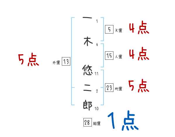 一木悠二郎さんの画数の鑑定結果
