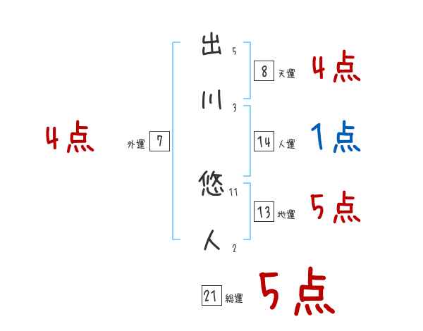 外運![]() | 出川悠人さんの外運は7画の4つ星!強い意志や信念を持ち独立心が強い。自立する。 生活面を象徴する運勢です。外部から受ける影響力を表し、結婚運、家庭運や職場、環境への順応性を表します。 |