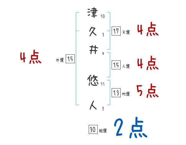 津久井悠人さんの画数の鑑定結果