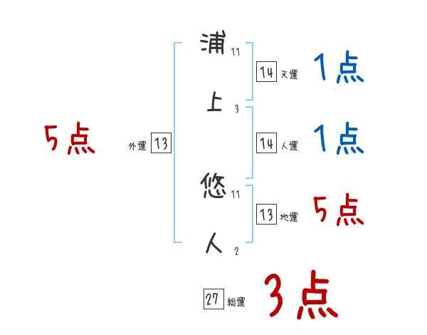 浦上悠人さんの画数の鑑定結果