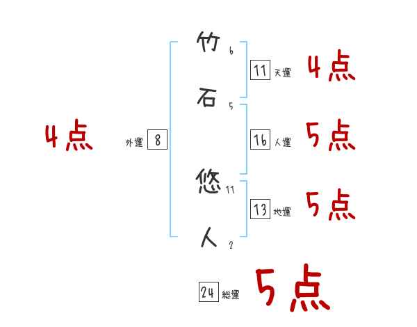 竹石悠人さんの画数の鑑定結果