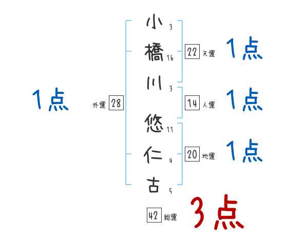 総運![]() | 小橋川悠仁古さんの総運は42画の3つ星!病気に注意。多芸であるが消極的でおとなしい。 あなたの人生を表す1番重要な運勢です。生涯を通じて影響する総合運となり、主に50歳以降の晩年期に影響を及ぼします。 |