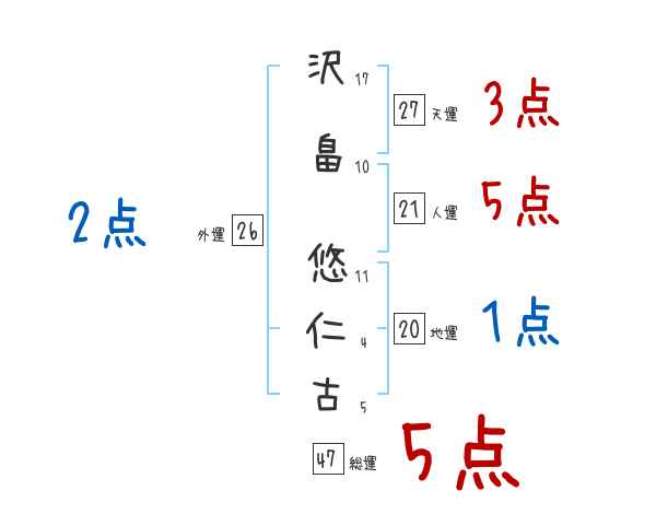 総運![]() | 沢畠悠仁古さんの総運は47画の5つ星!実力が開花し発展する円満な人生。財に恵まれる。 あなたの人生を表す1番重要な運勢です。生涯を通じて影響する総合運となり、主に50歳以降の晩年期に影響を及ぼします。 |