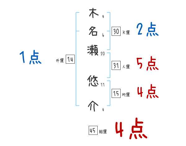 天運![]() | 木名瀬悠介さんの天運は30画の2つ星!浮き沈みの激しさに注意しましょう。 家系が持つ宿命的な運勢を表します。祖先から受け継いだ苗字ですので自分の力が及びません。家柄を象徴します。 |